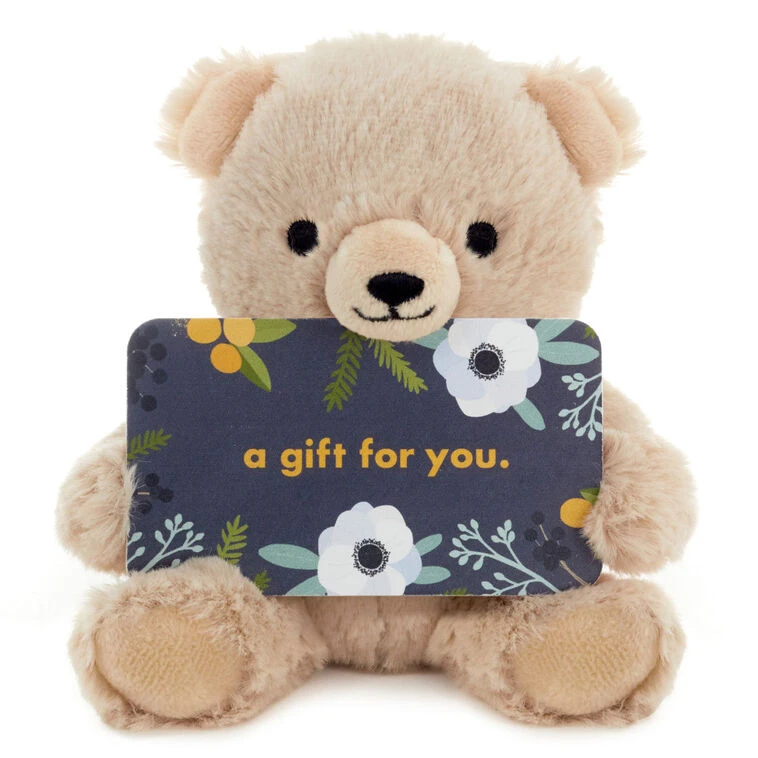 Place a gift card, mini greeting card or cash in the arms of the plush character.