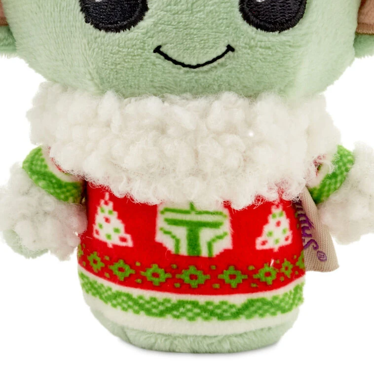 Share some warm fuzzies during the Christmas season with this adorable Holiday Sweater Grogu. Fans of Star Wars: The Mandalorian will love this festive, stylized plush version of the beloved character—affectionately known by fans as “Baby Yoda”—dressed in a Mando-themed Christmas sweater. It’s a must-have addition to any Star Wars itty bittys collection.