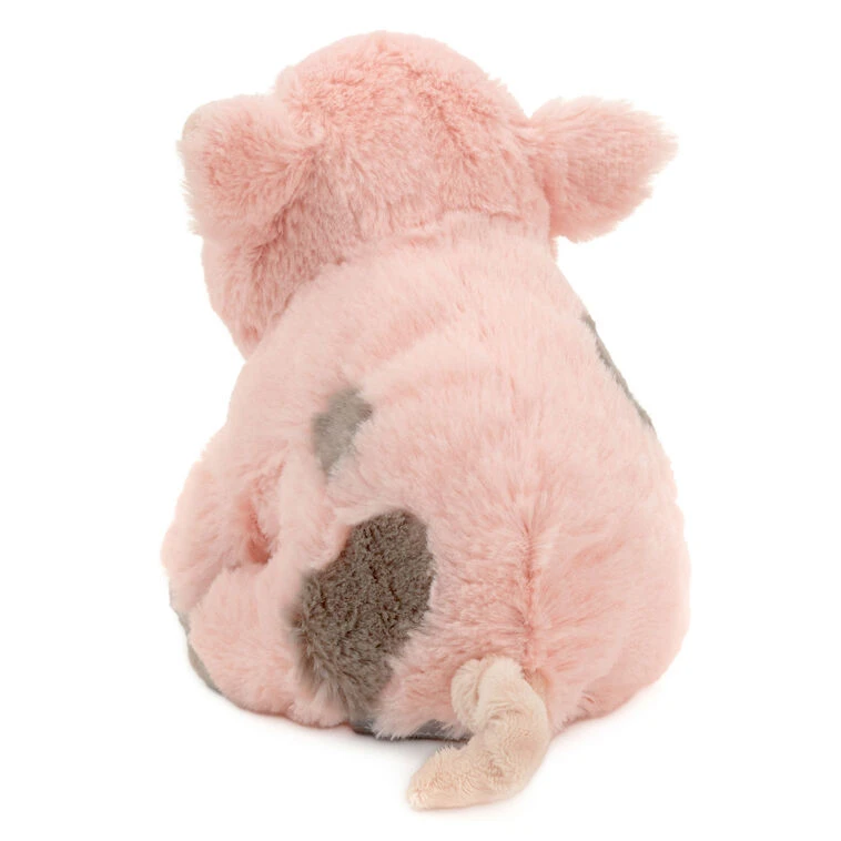 Welcome this cute plush baby pig into your home for snuggable fun. Stuffed full of adorable sweetness, this little pink piglet with brown hooves and spots and a fuzzy nose is super soft and perfect for little ones to cuddle, play with, or tote along to grandma’s house. Small stuffed toy makes a great gift for a new baby or toddler.